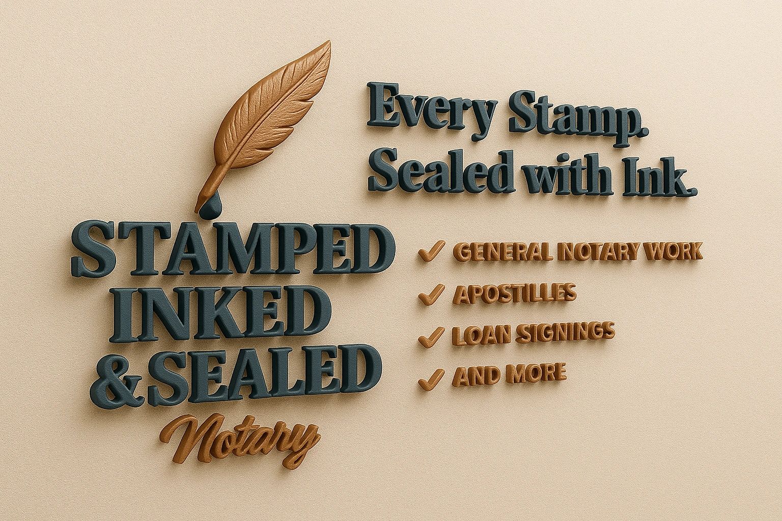 At Stamped Inked & Sealed Notary Services, we take pride in offering dependable, accurate, and stress-free notary experiences. Whether you need a document notarized for business or personal use, we bring professional, secure service directly to you.